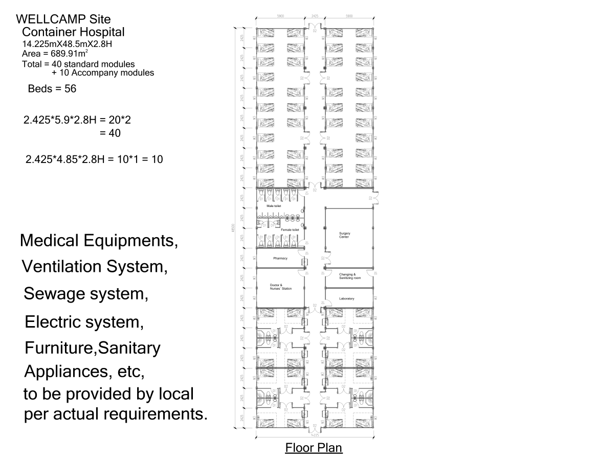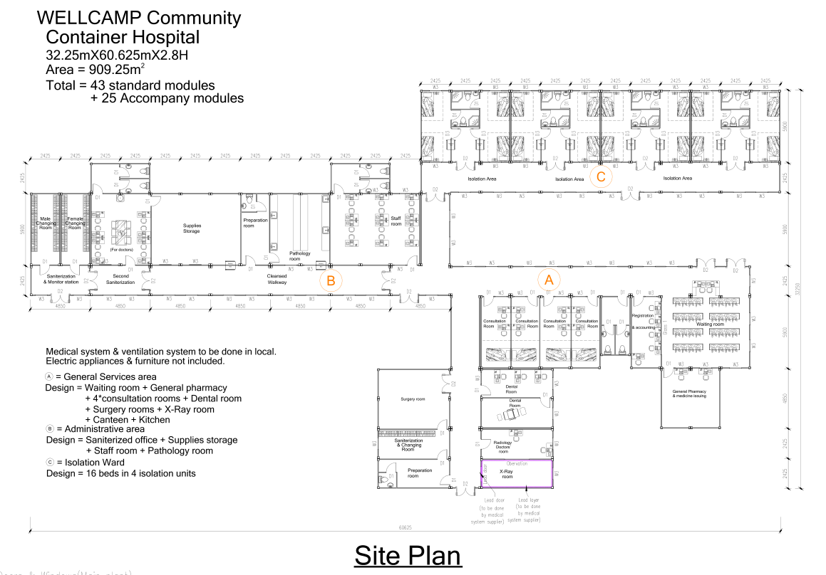 SOEASY utilized our 50-Bed Container Hospital design. With dimensions of 14.2m x 48.5m, the linear layout fits perfectly on restricted sites.